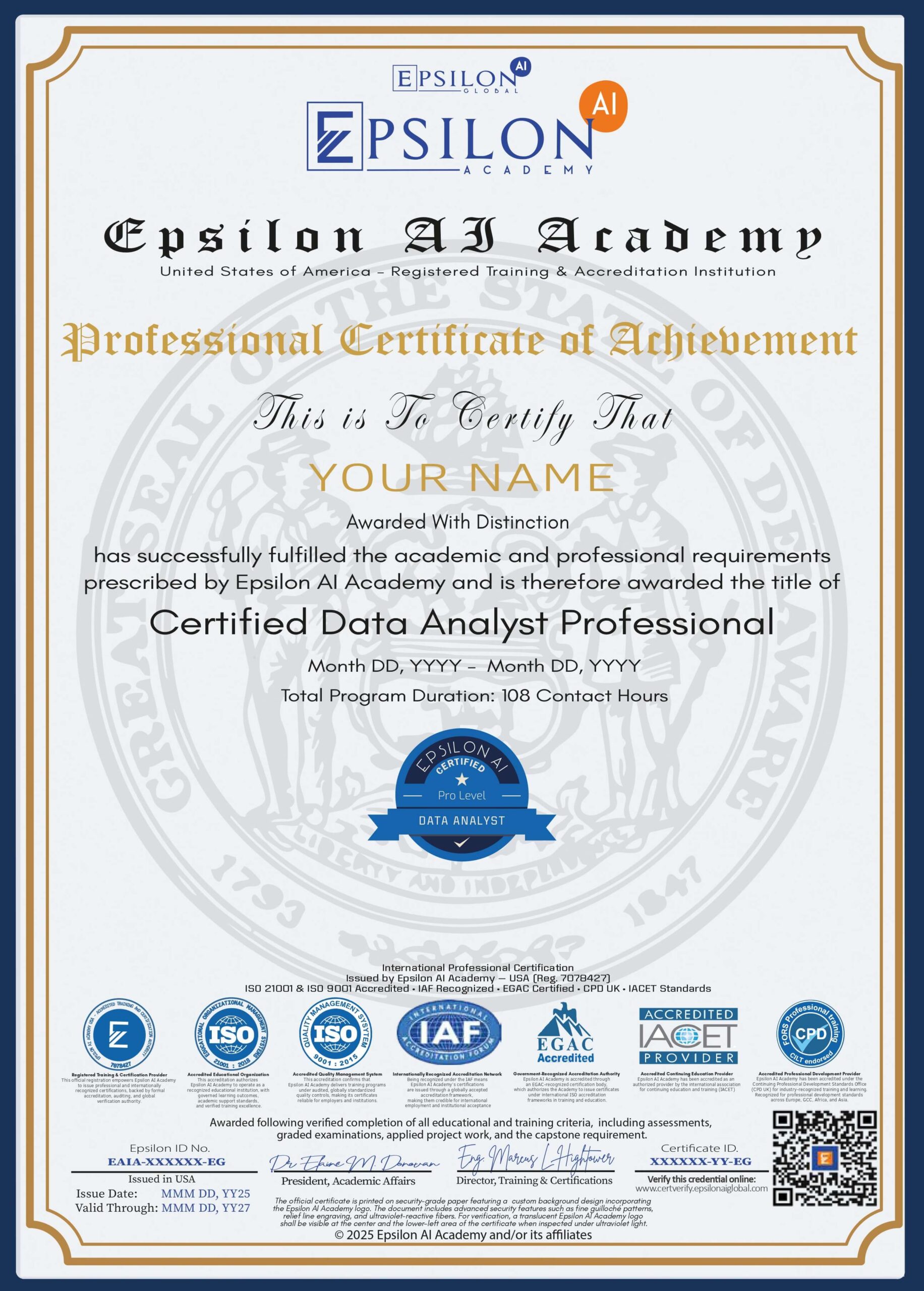All graduates receive a digitally authenticated certificate containing a unique Certificate ID and personal EPSILON ID, enabling instant, secure online verification.